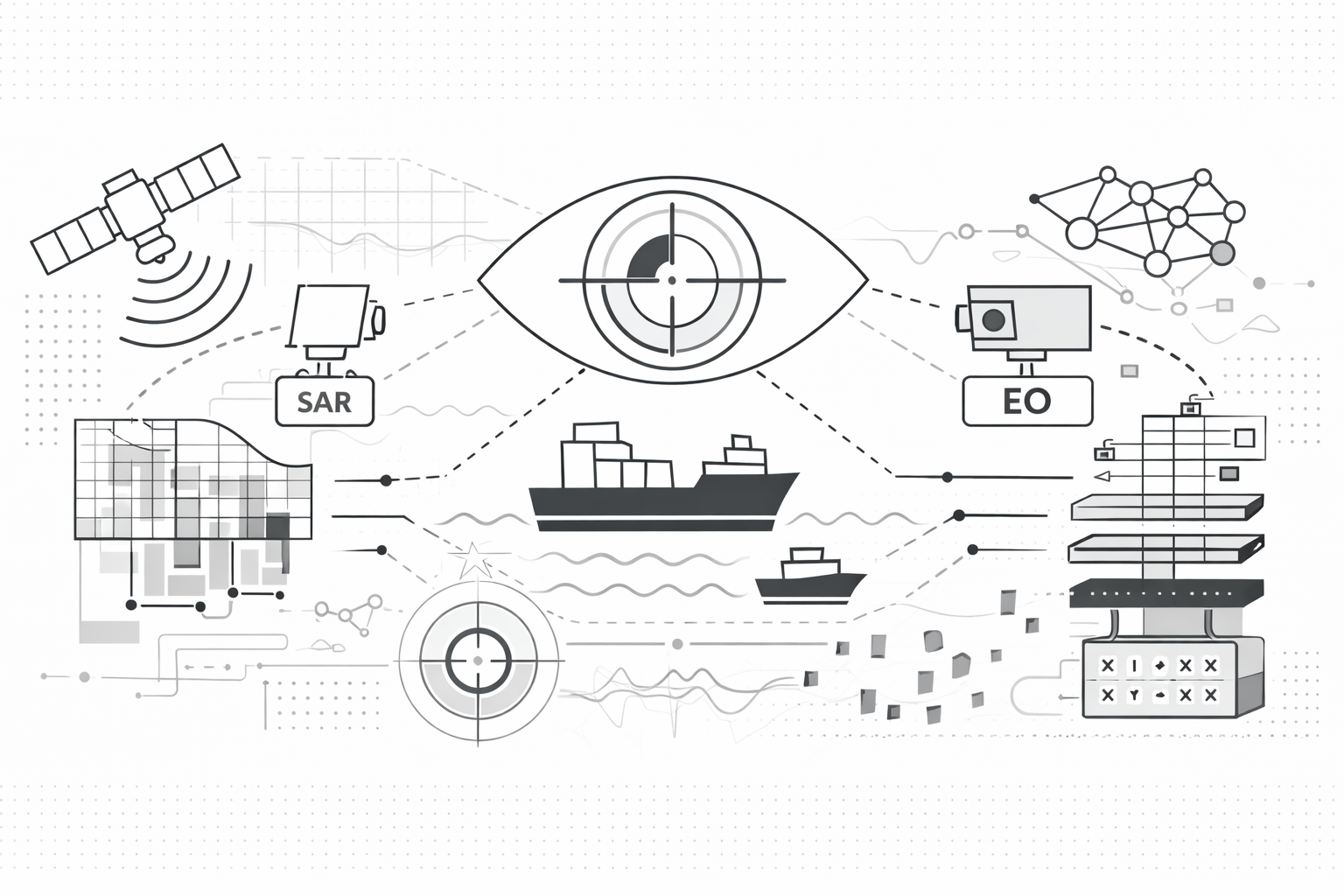 OS² uses two complementary sensors to detect vessels. SAR operates in all weather and darkness, providing reliable detection when optical sensors cannot function. EO imagery provides detailed information about vessel characteristics and attributes.