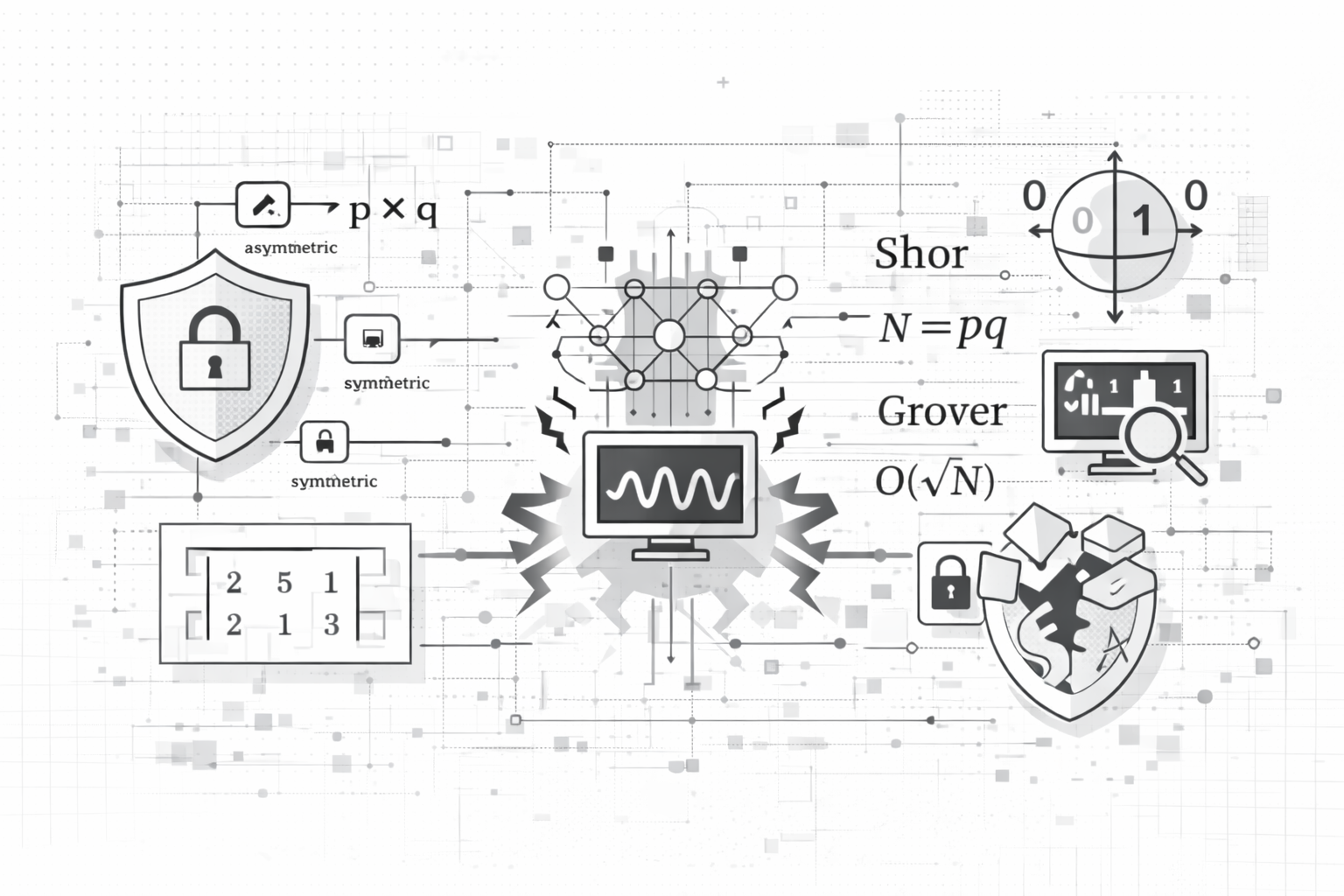 A comprehensive deep-dive into the mathematical foundations of post-quantum cryptography. Understand Shor's algorithm, Grover's algorithm, and why current cryptographic systems are vulnerable to quantum attacks.